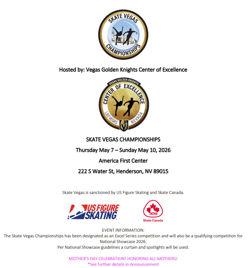 The Vegas Golden Knights Center of Excellence is a sanctioned US Figure Skating Club located in the heart of Las Vegas, Nevada.